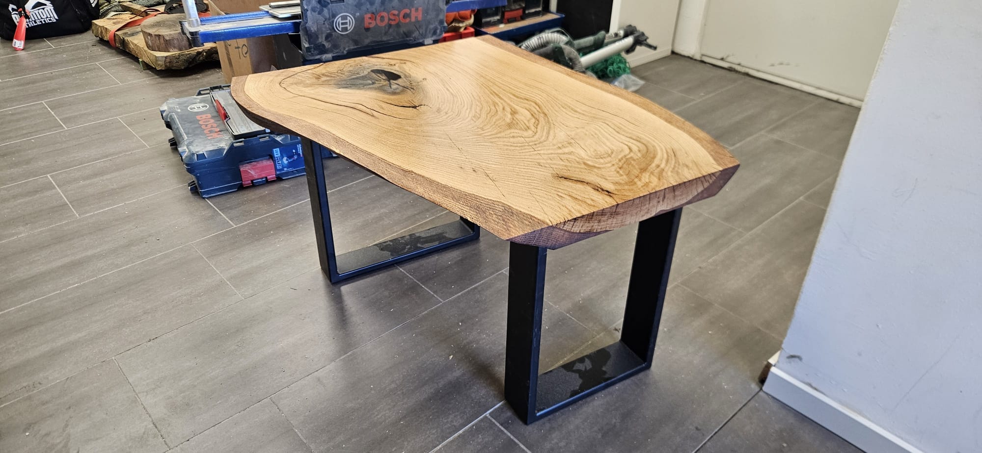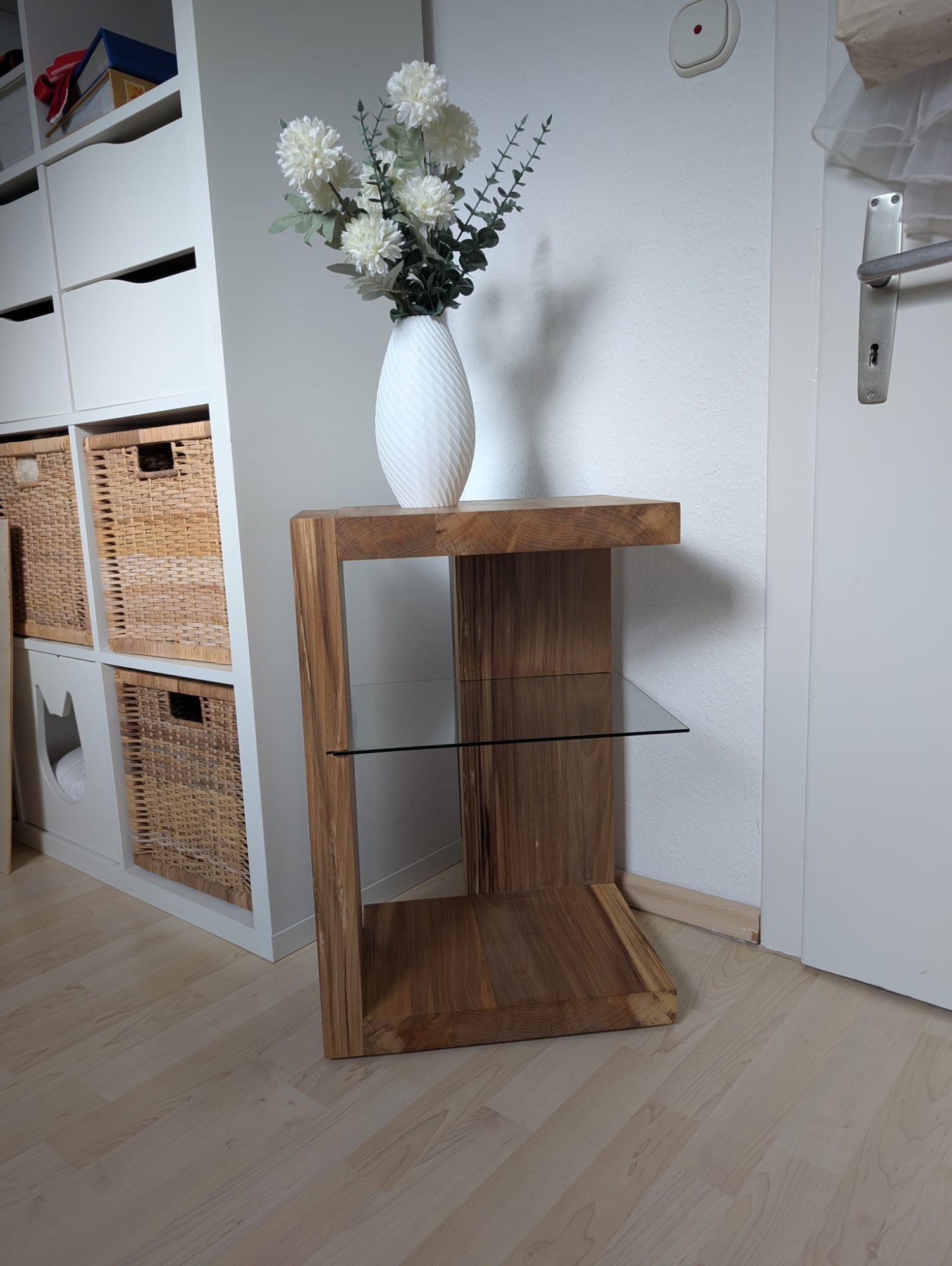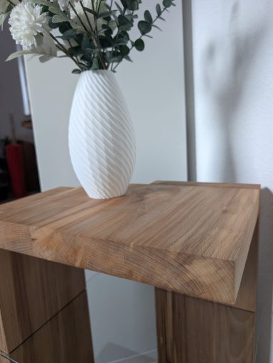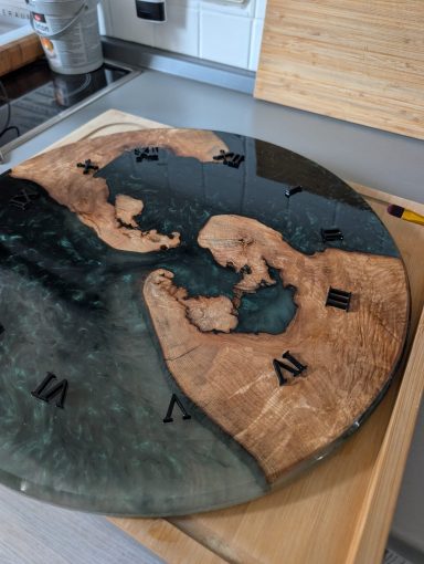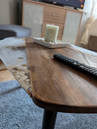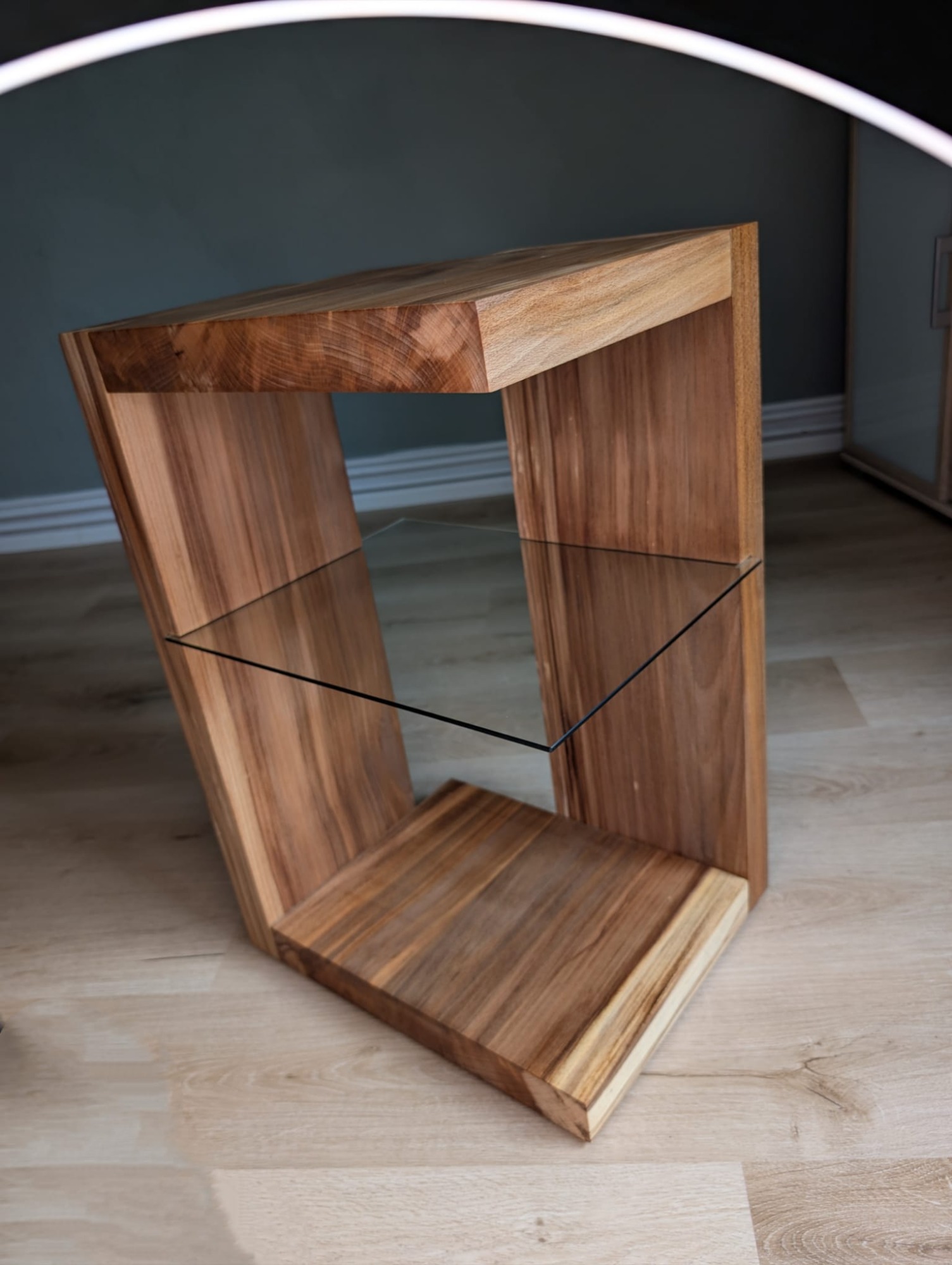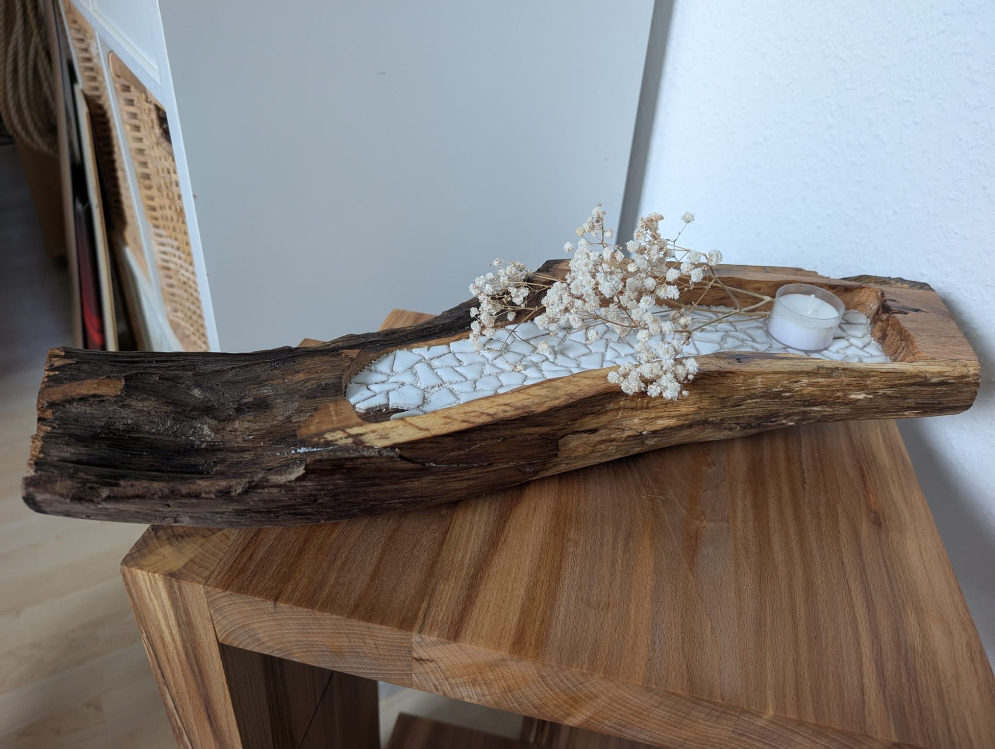 Materialliste: unterschiedliche Holzarten, Glas, Kunststoff, Stahl, Epoxidharz