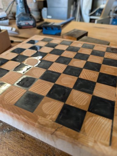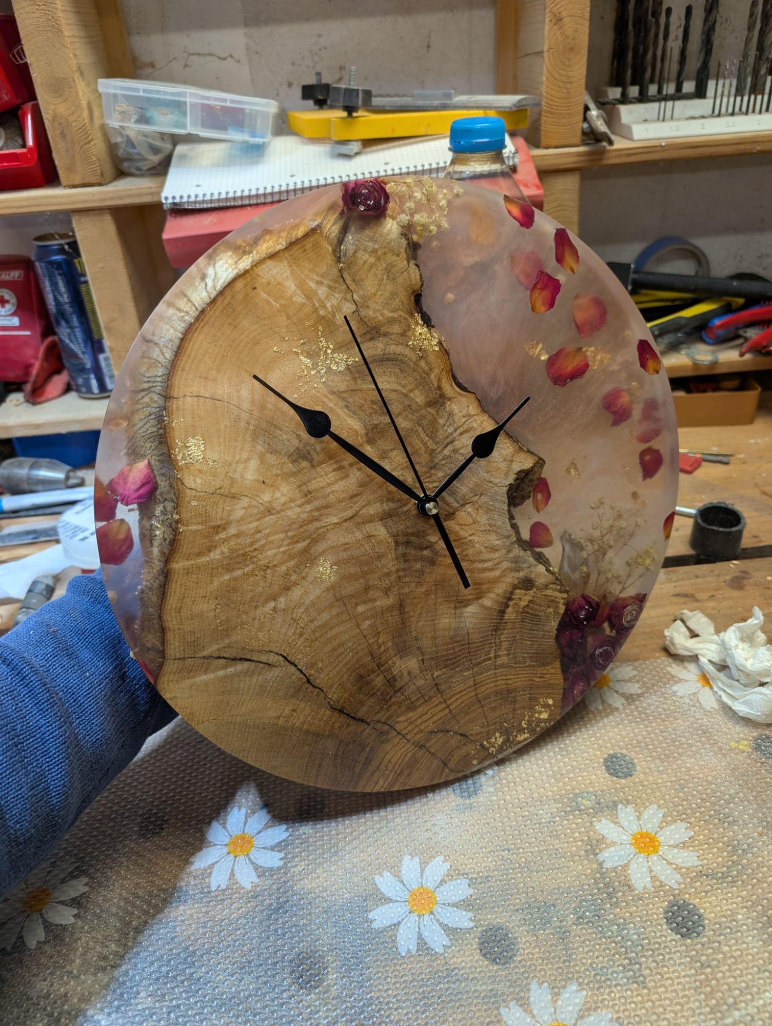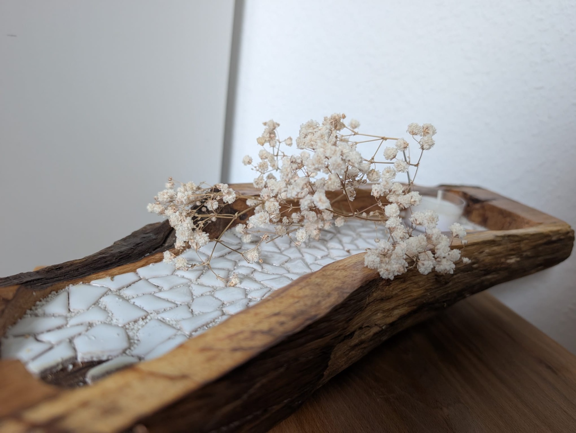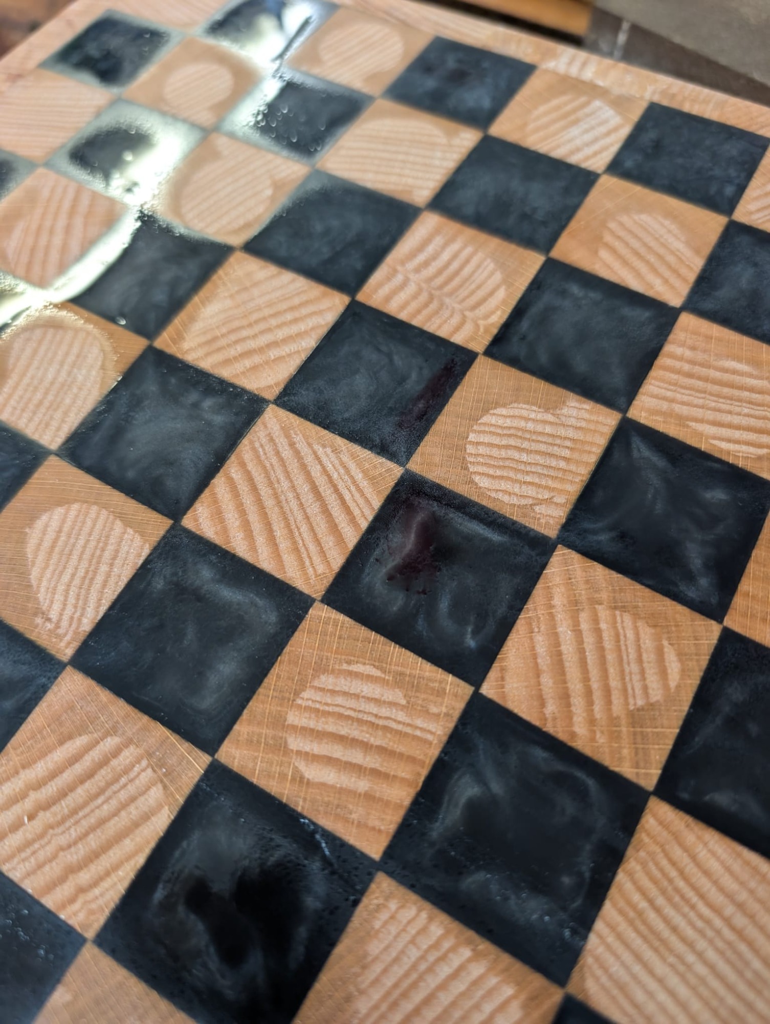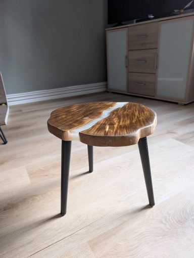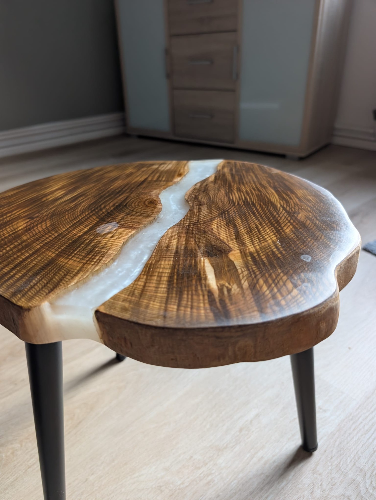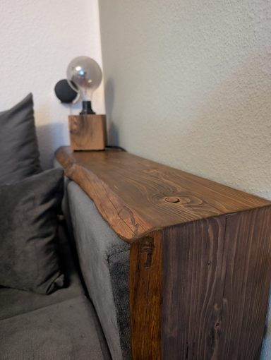 Materialliste: unterschiedliche Holzarten, Glas, Kunststoff, Stahl, Epoxidharz