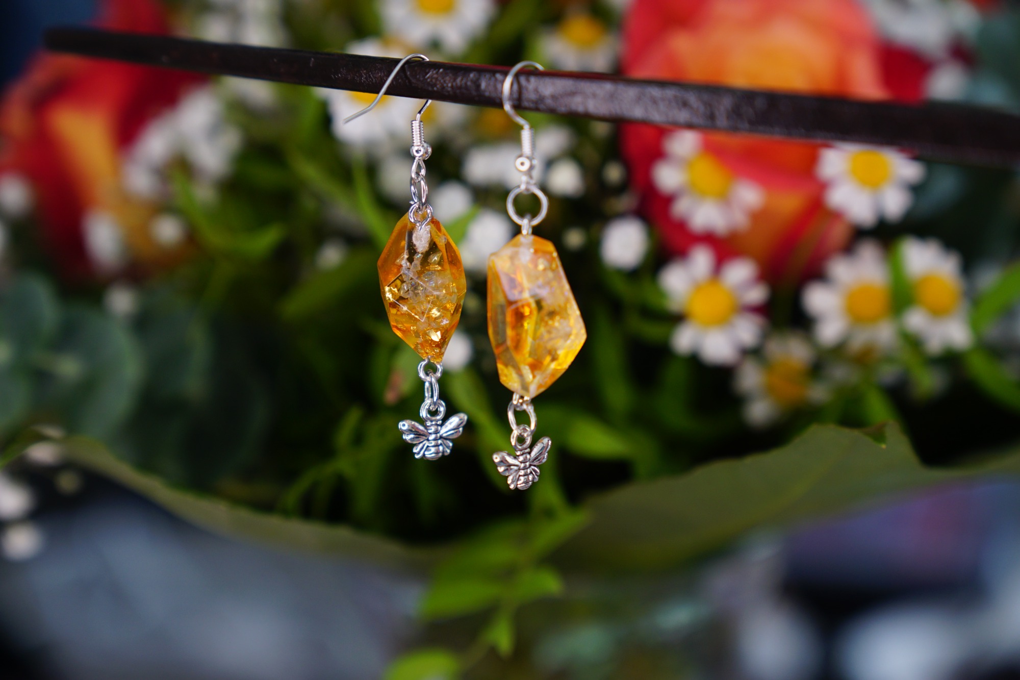 Materialliste: Epoxidharz, Farbpigmente, Trockenprodukte naturbelassen, Holz, Silber, Edelstahl, Tierhaare